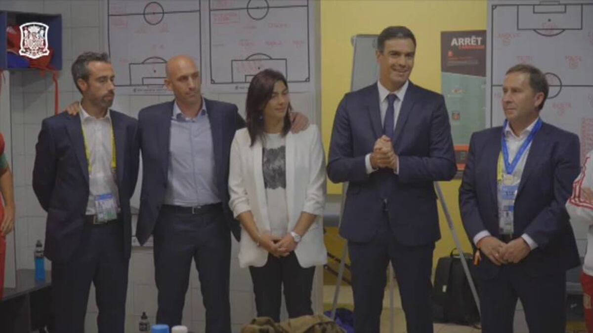 Junto a Sánchez estuvieron María José Rienda, presidenta del Consejo Superior de Deportes, y Luis Rubiales, presidente de la Federación Española de Fútbol, quien también quiso animar a las chicas de López: "No ha podido ser, pero somos la segunda nación del mundo. Hay que caerse para luego levantarse. Esto no es el final de nada, es el comienzo de algo. Muchas de vosotras estáis llamadas a hacer grandes cosas en el fútbol. Confiamos mucho y vamos a seguir apostando por el fútbol femenino".
