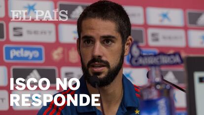 El jugador de la selección española y del Real Madrid Isco se ha negado a responder a una pregunta del periodista de EL PAÍS Diego Torres durante la rueda de prensa celebrada este jueves en la Ciudad del Fútbol de Las Rozas, previa al partido de la Liga de Naciones que España disputará este sábado en Londres contra Inglaterra.