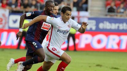 Escenarios como los de Ipurua trasladan al fútbol a otro tiempo. El Eibar se sabe de memoria lo que tiene que hacer. Y más ante rivales como el Sevilla, que viven del balón. Los de Mendilibar presionan muy fuerte, meten pelotas de forma continua en el área y saben jugar los segundos balones. El teatro de operaciones no era el más propicio, a priori, para un equipo comandado por Banega en el centro del campo, escoltado por Vázquez, un futbolista que juega siempre con mucha elegancia y dos delanteros de los que se asocian, Ben Yedder y André Silva. Sin embargo, el Sevilla tiene un buen entrenador y eso significa, entre otras cosas, que tiene información suficiente como para plantear un partido en Ipurua incluso jugando con tantos futbolistas de toque. Lógicamente, la sinfonía de pases exhibida ante el Madrid no se podía repetir.