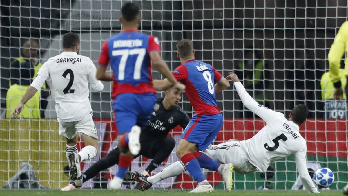 No hay jugador del Madrid suizamente tan preciso como el alemán Kroos. Pero en tiempos de turbación general, hasta el germano dejó un borrón nada más quitarse el chándal. Apenas superado el primer minuto, Kroos, muy sobrado, quiso hilar con Varane con un pase a bote pronto. Un premio inopinado para Vlasic, que perforó la portería de Keylor. El Real, con dudas tras su bacheado tránsito por la Liga, quedó sonado. Hasta el punto de que el joven CSKA (23 años de media) pareció lo que ni remotamente es: un equipo temible.