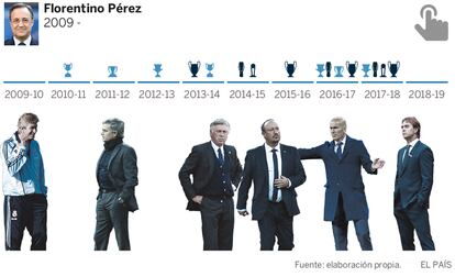 La dilación precede la gestión de Florentino Pérez. El presidente decidió despedir a Lopetegui el 2 de octubre, tras el partido de Champions que perdió el Madrid con el CSKA en Moscú (1-0). Ha transcurrido un mes sin que el club concrete el sucesor. El nombramiento de Solari como interino revela la existencia de un vacío que el club no sabe cómo llenar. Hasta este fin de semana, los primeros nombres en la lista del presidente eran José Mourinho, con contrato en vigor con el United, y Antonio Conte, con quien el club negoció en las últimas horas sin alcanzar un acuerdo.
