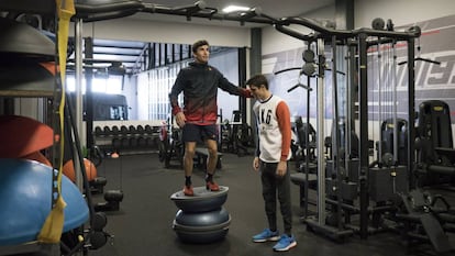 Sus rivales le admiran por todas las caídas que ha sido capaz de salvar, especialmente este curso. Y aunque él es el primero que sabe que la fórmula no es infalible, sigue trabajando en acompañar con su físico al instinto: unas horas de cardio por las mañanas, unas horas de gimnasio por las tardes. “Reacciona muy rápido ante un estímulo. Puede analizar muchas cosas en décimas de segundo y anticiparse a lo que pueda pasar”, explica Genís Cuadros, que le entrena desde los 12 años. “Además, es una persona bastante flexible; ha trabajado mucho la flexibilidad desde hace años; de hecho, evita entrenar demasiado la fuerza para no estar muy musculado. Necesita moverse con facilidad encima de la moto, no engarrotarse”, añade.