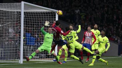 Cada cual sintió que llegar a las porterías era un viaje lunar. El cuadro local se atrincheró en busca de una carrera de Griezmann, Costa o Lemar. Pero nadie les dio carrete. Koke, Rodri y Saúl solo estaban para la intendencia. Enfrente, ausente Coutinho, extraviado Dembélé y vista la tiritona defensiva de este curso, Valverde sobrecargó el medio campo con Sergi Roberto y Arturo Vidal. Del 4-3-3 al 4-4-2 con el chileno como punta del rombo central. Temeroso de sí mismo y de algún acelere rival, al Barça le faltó ese punto de osadía que le distingue en sus momentos de confianza.