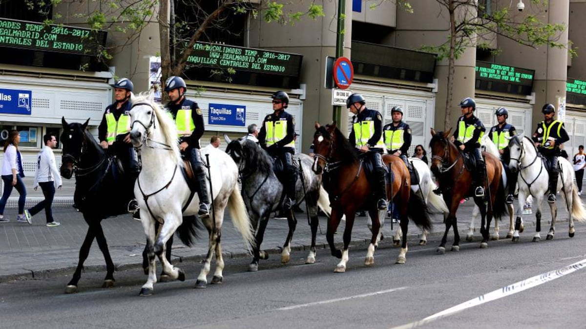 En un partido de alto riesgo participan antidisturbios, guías caninos, agentes de caballería y subsuelo y helicópteros de la Policía Nacional, junto con funcionarios de la Policía Municipal encargados de regular el tráfico, sanitarios del Samur que despliegan hospitales de campaña para atender a los heridos, y voluntarios de Protección Civil, además de agentes de movilidad.