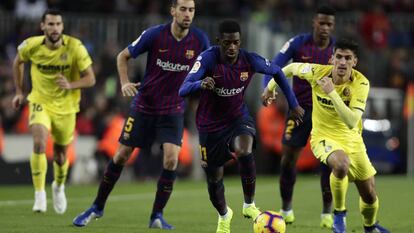 El Barcelona se impuso ante el Villarreal en el Camp Nou. Después de dos partidos sin conseguir los tres puntos, derrota ante el Betis y empate frente al Atlético de Madrid, el conjunto azulgrana derrotó al equipo de Calleja con goles Piqué y Aleñá. Con ocho jugadores en la enfermería, Valverde repitió el mismo once que venció el pasado miércoles al PSV en la Champions. Seguro en defensa, punzante en ataque, el Barcelona se aferró a Piqué en la zaga y a Dembélé en la delantera. De hecho, entre el catalán y el francés construyeron el gol azulgrana. Centro del 11 para que Piqué, de cabeza, sellara el 1-0. Sobre el final del partido, Aleñá marcó el segundo después de un buen pase de Messi.