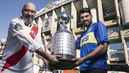 La frustrada final en el Monumental ha dejado mella en las aficiones de River y de Boca en Madrid. “El decorado acá es muy lindo, el Santiago Bernabéu es espectacular, pero a nosotros nos hubiese gustado jugar este partido en nuestra casa, en el Monumental”, opina Vides. Y a la afición de Boca, en principio, beneficiada por disputar la vuelta lejos del estadio de su eterno rival y con presencia de ambas aficiones, tampoco les hace ilusión el superclásico en Chamartín. “¿Al Barcelona le gustaría ganarle una final al Madrid en el Bernabéu, no?”, cuestiona el portavoz de Boca; “bueno, a nosotros nos pasa lo mismo. Queríamos ganar en la cancha de ellos”.