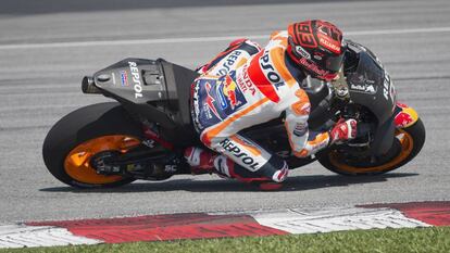 Marc Márquez atiende a lo que le interesa. Si un consejo es bueno para él, lo asume. Como cuando le explicaron que no podría dar tantas vueltas como le gustaría en el primer test de pretemporada, celebrado desde este martes y durante tres días en Sepang (Malasia), que su hombro, ese que se operó a principios de diciembre, todavía no está para tanto estrés. “Si se inflama hoy, ya no puedo rodar los otros dos días”, apunta. Si su opinión, en cambio, difiere de la del resto, escucha, pero no se atora. Como cuando trataron de meterle en la cabeza que no se preocupara más que de llegar en forma a la primera carrera del año, el 10 de marzo en Qatar. “En mi entorno solo se hablaba de Qatar, pero yo quería llegar bien a Malasia. Este es un test muy importante, de estos entrenamientos depende mucho la temporada. Trabajas y te levantas cada día porque tienes un objetivo. Yo quería llegar aquí a punto, me había marcado esta fecha”, confiesa al bajarse de la moto.