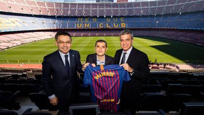 Aunque en las redes sociales hay incendios a cada ocasión que el Barcelona no defiende sus raíces sobre el tapete, cosa que se ha dado demasiado en este curso porque los jugadores escogen a la carta o rinden mejor cuando mayor es el reto, desde el club no había dudas sobre la continuidad del entrenador. “Su renovación es un paso necesario y da continuidad al proyecto exitoso de Valverde. Todos estamos contentos y felices, tanto el equipo como la junta directiva”, resolvió Jordi Mestre, vicepresidente deportivo del Barça. “Con Ernesto garantizamos la continuidad de un entrenador y de una persona que representa de manera excelente los valores del club y la visión que tenemos del fútbol. Compartimos un proyecto ganador para el Barça”, se sumó Bartomeu a través de las redes sociales. El técnico, que atendió a los medios del Barcelona por la mañana, recogió el testigo: “Estoy muy contento, encantado. Con la sensación de que estoy viviendo una situación única y agradecido porque el club valora lo que estoy haciendo. Y estoy muy cómodo con el equipo. Es apasionante poder dirigir a este club y a estos futbolistas”. Un discurso que validan los jugadores porque aceptan de buen agrado la gestión que hace del vestuario, también la propuesta futbolística porque con eso les alcanzó para conquistar el doblete (Liga y Copa) en el curso anterior, ahora de pie en Champions, líder en LaLiga y en las semifinales coperas tras empatar a uno en la ida frente al Madrid. “Tenemos muchos retos por delante, partidos y títulos por ganar. Que el club piense en mí me reconforta y me hace estar más responsabilizado”, intervino Valverde, que añadió: “El gran reto es que el club cada día sea más grande, que la gente siga disfrutando y ganando títulos”.