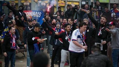 Unos 4.500 seguidores del OL, entre ellos unos 300 ultras de extrema derecha, se ha concentrado esta tarde en la plaza de Artós de la capital catalana, gritando consignas como "Puta Barça" y "Puta Cataluña", a la espera de disputar el partido de Champions contra el FC Barcelona.