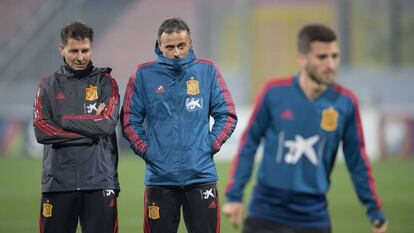 La novedad en la delantera con dos arietes como Morata y Rodrigo reside en la caída a banda derecha de este último para aprovechar sus diagonales a pierna cambiada. Con Lopetegui, en la selección sub-21 que conquistó el europeo en 2013, era Morata el que jugaba en un costado, el izquierdo. Ahí la intención del exseleccionador era sacar partido de su zancada. Con todo, Luis Enrique prefiere una terna más móvil que intercambie posiciones, pero sin perder de vista la posición inicial de la que parten. “La movilidad de los de los delanteros es recomendable, pero también hay que ocupar una serie de espacios”.