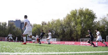 “Dale, dale. ¡Solo! Toda, toda. ¡Misma, misma!”. Son palabras sueltas que solo las entiende aquel que ha jugado al fútbol profesional. Indican desmarques, órdenes, detalles. Las gritan 36 canteranos de entre 18 y 20 años de clubes de toda España en un partido que poco dista en tensión de los que se ven por la tele. Los chavales han acudido a Madrid para exhibir sus habilidades bajo la atenta mirada de una veintena de ojeadores de varias universidades estadounidenses. Tras este primer examen y varias entrevistas después, los elegidos cruzarán el charco con una beca bajo el brazo para proseguir sus carreras futbolística y académica en EE UU. Una alternativa al difícil acceso a la élite que brinda el programa ProPlayer, impulsado por LaLiga y el Banco Santander, cuyo objetivo es que estos jóvenes jugadores compaginen deporte al máximo nivel y formación accediendo al sistema de becas estadounidense. Y que aquellos que no logren vivir del balón se labren una salida profesional de garantías.