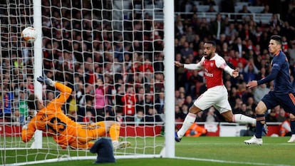 La jugada del 1-1 concentró la problemática de los equipos enfrentados. El Valencia se había propuesto no conceder espacios a su rival y se los concedió de la manera más innecesaria. Presionando mal un saque de banda del Arsenal en su campo sin que la defensa de tres centrales hiciera lo que suelen hacer cuando están rodadas. Paulista encimó a Lacazette, el francés descargó el pase largo en Özil, y el mediapunta le devolvió un balón tan dulce que fue como si encendiera la mecha de una bomba. Orientado por el pase de Özil, Lacazette se encontró con todo el panorama abierto ante sus ojos. Su pase a Aubameyang abrió en canal la presión del rival porque ni Roncaglia ni Garay se pusieron de acuerdo sobre quién debía encimar y quién debía corregir. Por la brecha de ese instante de duda se coló Aubameyang como un tiro antes de dar el último pase. Lacazette marcó a placer y la multitud del Emirates se despertó del letargo con un rugido.