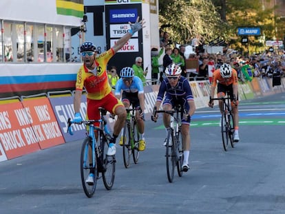 La víspera del Mundial de Innsbruck, cuando se le comentaba que Peter Sagan, tres veces seguidas campeón del mundo, vería lógico que se retirara desde el podio si triunfaba, Valverde se ponía serio. “¿Estás loco?”, respondía. “Cómo me voy a retirar si lo mejor de ganar el Mundial es vestir de arcoíris todo un año”.