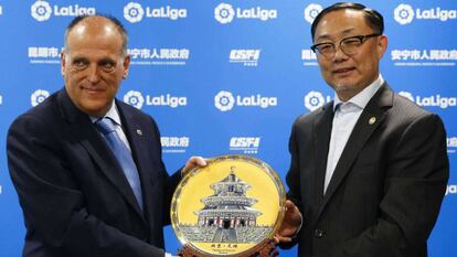 La batería de reuniones entre la Federación Española de Fútbol (FEF) y LaLiga para firmar un nuevo convenio de coordinación, con el Consejo Superior de Deportes (CSD) de mediador, vivió este lunes un capítulo más calmado. Lejos de los encuentros beligerantes, con amenazas y demandas de por medio entre el presidente de LaLiga, Javier Tebas, y el federativo, Luis Rubiales, este nuevo encuentro en la sede del CSD resultó ser el más pragmático de cuantos se han celebrado. A la cita no asistió el presidente de la patronal, que tenía marcada la fecha con antelación para un compromiso de LaLiga con autoridades chinas en Madrid.