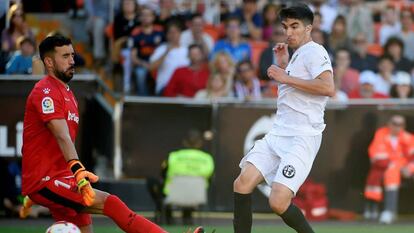 Bloqueado por el Alavés y corto de físico, el Valencia tiró de recursos y remontó con fútbol directo y a balón parado. Todo en cinco minutos. Primero, Gabriel Paulista envió un pelotazo en diagonal a la espalda de la defensa vasca que Rubén Duarte, en su intento de despejar, puso a los pies de Carlos Soler, que persiguió el error del lateral. Ante la salida de Pacheco, el canterano resolvió con un golpeo de interior y un caño al portero empatando el duelo. Luego, Parejo botó un córner y Santi Mina, con un muelle en las botas, saltó y cabeceó a puerta para el 2-1.