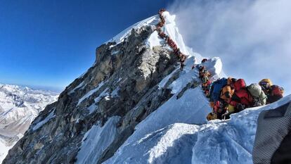 En el mundo de la montaña tienden a disiparse cuestiones fundamentales. Antes de que algunos abrazasen el montañismo como un objeto más de consumo, la mayoría trataba de colocarse a la altura de la montaña, esto es, sin buscar atajos y trampas para lograr lo contrario: degradar la montaña a la altura de su incapacidad. Si el Everest representa el triunfo de este artificio, su triste realidad se explica por cuestiones de ego y de simple y puro engaño o ingenuidad. Por ejemplo, muchos de los que estos días han colapsado el techo del planeta aceptaron anuncios como este: “Si desea descubrir qué se siente en el punto más elevado del planeta y dispone del capital suficiente para compensar su edad avanzada, su deficiente condición física o su miedo al riesgo, puede apuntarse al servicio VIP del Everest ofrecido por…”.