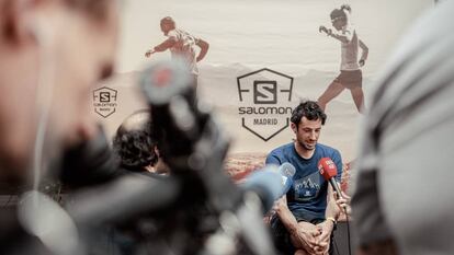 "Hace demasiado calor aquí. ¿Cómo se dice? Eso, bochorno. Hace un bochorno tremendo. Casi no se puede ni respirar". Acostumbrado a la vida en Romsdal, una pequeña región noruega donde hay casi más picos que personas, a Kilian Jornet (Sabadell, 31 años) le cuesta moverse entre las altas temperaturas que se están dando en los últimos días en Madrid. Recién llegado de Gipuzkoa, donde este domingo se impuso por novena vez en la durísima maratón de montaña de Zegama, el alpinista y corredor de montaña catalán reflexiona, durante la apertura de la tienda Salomon Store, sobre la competición, su pasión por la montaña y temas tan candentes como la polémica turística del Everest con la calma y el poso que le dan sus más de 15 años de trayectoria.