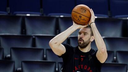Marc Gasol (Barcelona, 29 de enero de 1985) ha llegado a la cumbre y sigue mirando hacia arriba: al Mundial de China que le aguarda con España del 31 de agosto al 15 de septiembre. Y con el telón de fondo de los Juegos Olímpicos de 2020 en Tokio. Y también mira a ras de tierra, literalmente. Atiende a EL PAÍS en el OVO Athletic Center, cuartel general de los Toronto Raptors, mientras su hija Julia, de cuatro años, se entretiene pintarrajeando una cartulina. Su padre es feliz, tras 11 temporadas ha conseguido el ansiado título, igual que su hermano Pau en 2009 y 2010 con los Lakers. Los Toronto Raptors le han cambiado la vida y él ha cambiado la vida del equipo canadiense en apenas cuatro meses, desde que llegó a Toronto en febrero tras un intercambio con Memphis Grizzlies. Hoy, la franquicia —fundada en 1995— y el jugador catalán comparten su primer título de la NBA.