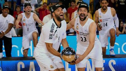 El Real Madrid selló en el Palau Blaugrana su certificado de hegemonía. Alzaron los blancos la 35ª Liga por las 18 de su eterno rival. En el vestuario blanco en el Palau se mezclaban las bandas sonoras, del Campeones, Campeones al 'Fantástico' de Love of Lesbian. Era el 17º título de la era Laso, 10 de ellos conquistados ante el Barça, y la quinta Liga con el técnico vitoriano en las últimas siete temporadas, la mejor secuencia de la enciclopedia madridista en 33 años.