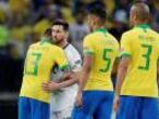 Messi no podía contener la rabia en el Mineirao. “Ojalá la Conmebol haga algo, aunque no creo que haga nada porque Brasil maneja todo. Es muy complicado”. Los jugadores de Argentina se quejaron de dos supuestos penaltis que no sancionó el árbitro ecuatoriano Zambrano. Uno al Kun Agüero en un choque con Dani Alves y otro de Arthur a Otamendi, que terminó en el segundo gol de Brasil. "Yo estoy de acuerdo con Messi, me pareció que el árbitro estaba más nervioso que nosotros”, se sumó Dani Alves. “El VAR funcionó muy bien hasta hoy [por este miércoles]. Sentí el golpe de Dani Alves, no sé por qué motivo no se revisó porque nos habían explicado antes de la Copa que iba a hacer en las jugadas decisivas”, se quejó Agüero. Y el entrenador de Argentina, Lionel Scaloni, remató: “El árbitro condicionó el partido”.