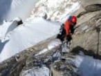 Apenas les rozaba el sol unos minutos. Apenas dormían. En circunstancias normales, solo el escalador que lidera la cordada pasa miedo, teme la caída, mientas que el que asegura se siente a salvo en la reunión. Pero cuando el primero no puede colocar seguros que frenen su caída y la reunión es tan mediocre que no soportará el peso de dos cuerpos, el terror se comparte. Así, la mente nunca reposa, el miedo a morir crece y la única solución es huir hacia arriba.