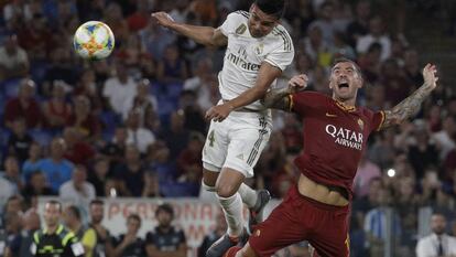 El cara o cruz de Marcelo derivó en una secuencia de idas y venidas, todas con peligro en ambos lados, aunque en mayor cantidad para la Roma. Dzeko y Ünder vieron el hueco a la espalda del lateral y se volcaron sobre él. La potencia del bosnio no encontró réplica en Varane, flojo en la marca, y permitió que las acometidas de la Roma ocupasen distintas alturas y llegasen hasta Courtois.