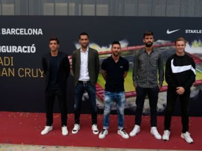 Messi y los capitanes del Barça en la inauguración del Johan Cruyff