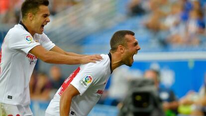 Aunque el primero que pudo marcar fue el Alavés, en un balón que recibió Joselu en carrera para plantarse en solitario ante Vaclik y disparar demasiado cruzado, el Sevilla ya había dado muestras de su energía antes de ese minuto 7, y la siguió dando después; ahogando a su rival en el medio campo, sin darle tiempo a pensar. El Sevilla se plantaba en el área con preocupante facilidad y pudo marcar enseguida, en un taconazo de Ocampos que se topó con el cuerpo de Pacheco; en un disparo lejano de Banega, o en un remate de Jordán, que el portero del Alavés sacó con el puño cuando se colaba el balón.