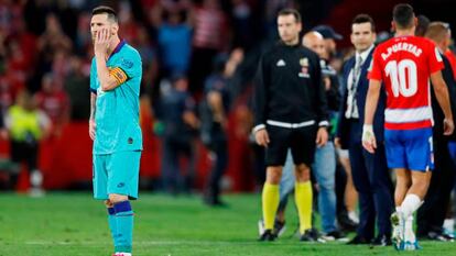 El Granada va como un tiro y no se mueve el Barça. No juegan, ni marcan ni respiran los azulgrana cuando salen del Camp Nou. Han empeorado seriamente desde su estreno en San Mamés y ya cuentan ocho derrotas desde su último triunfo el 23 de abril, día de Sant Jordi, en la cancha del Alavés. No se corrigen con el paso del tiempo, con el cambio de temporada, ni siquiera con los fichajes, tampoco con la vuelta de Messi. No se recordaba nada igual desde la temporada 1994-1995. La Liga parecía aguardar al 10 para arrancar y ni con el capitán mejoró el Barça. El equipo de Valverde descuenta puntos sin parar y sin remedio, esperpéntico en Granada.