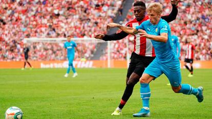 En foto, Williams y Wass, a por el balón. En vídeo, Celades y Garitano hablan sobre el partido.Foto: atlas | Vídeo: AFP / ATLAS
