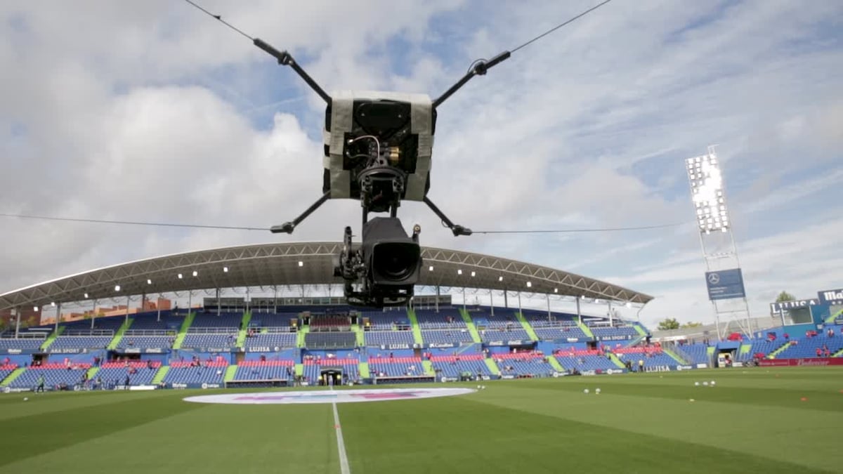 Es uno de los iconos que hacen que las retransmisiones de LaLiga Santander sean diferentes. 11 de los 20 estadios cuentan ya con la cámara aérea que recorre hasta diez metros por segundo montada en una estructura que roza la tonelada