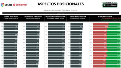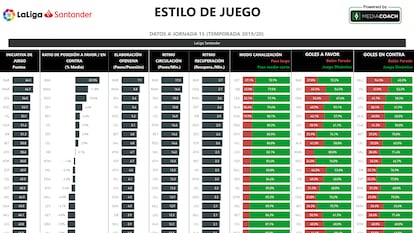 “Los cuatro equipos que están actualmente arriba en la clasificación son aquellos que más dominio tienen del juego, no solo en posesión, sino los que optan por tratar de imponerse al rival tratando de encarar su portería con pases cortos y juego combinativo”, describe Roberto López, coordinador del proyecto Mediacoach y del Área de Investigación Deportiva de LaLiga. Mucho ritmo de circulación de balón frente a la verticalidad del pase largo.