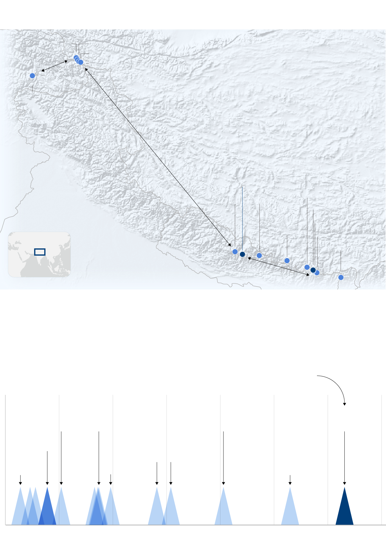 En negrita, annapurnistas de la cara sur fallecidos en las montañas o en otras circunstancias.