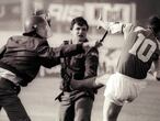 El coche del árbitro fue destrozado y tardó horas en salir del estadio