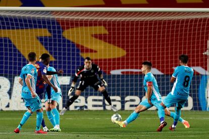 El primer disparo a puerta del Barcelona tiene premio. Ocurrió en el Visit Mallorca Estadi con un remate con la cresta de Vidal cuando apenas se desperezaba el duelo y sucedió anoche de nuevo en el Camp Nou con un disparo de Ansu Fati desde el balcón del área. El futbolista, como si de unas décadas atrás se encontrara, saltó y elevó el brazo para festejar el tanto. Sin añadidos ni edulcorantes. Como es Ansu, un imberbe que bate registros de precocidad sin alzar la voz, pero con goles como respuesta. Así lo hizo para quedarse en el primer equipo; así lo repitió para discutirle los galones a Dembélé sobre el césped; y así se significa ahora porque quiere festejar LaLiga con el Barça antes que el ascenso con el filial a Segunda, como se plantea el club en caso de disputar el playoff. Quiere ser, como definió Setién a Griezmann el lunes, imprescindible.