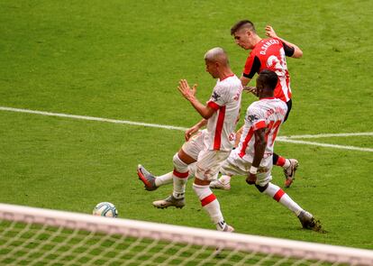 Solo otra pena máxima activó el duelo, que se dormía al son de la canción de cuna que tarareaba el Athletic. No le quedaba otra opción al Mallorca que perseverar en el área rojiblanca, y en el minuto 69 una pena máxima que aprovechó Budimir estrechó el marcador y alimentó las esperanzas del equipo visitante, que se lanzó, sin demasiados argumentos ofensivos, hacia el área bilbaína. Apretó pero no ahogó al Athletic, que comenzaba a dar signos de agotamiento hasta que los cambios le refrescaron. Uno de los nuevos, Asier Villalibre, especialista en aprovechar los minutos, sentenció el partido en el 89. Unai Simón, cuatro más tarde, evitó que el Mallorca volviera a marcar en el descuento. Los tres puntos se quedaron en Bilbao. El Athletic progresa adecuadamente y suma tres victorias y dos empates tras el confinamiento. Solo cayó derrotado en Barcelona. Los isleños regresan angustiados a casa. Les queda cada vez menos margen de maniobra.
