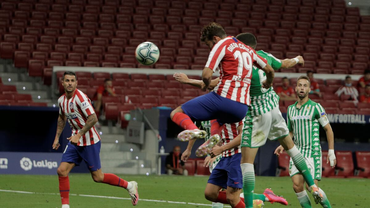 Así que al Atlético no le quedó más remedio que apelar a su épica defensiva y a esperar un error del Betis, una contra o una jugada de estrategia. Sucedió esto último. Carrasco fue agarrado en la mediapunta y desde allí enguantó el saque de falta al segundo palo. Costa lo picó cruzado. El grito de Simeone retumbó, pero de nuevo el VAR intervino. Esta vez no estimó como manos el impacto del balón en el hombro tras el cabezazo del hispano-brasileño.