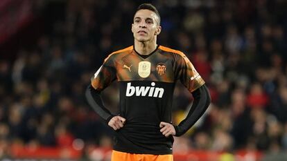 En el plazo de un año, el nombre de Rodrigo ha ido dando tumbos entre Madrid y Barcelona como una pelota. En agosto de 2019 el propietario del Valencia, Peter Lim, pactó con Miguel Ángel Gil Marín, consejero delegado del Atlético, la venta del internacional con España, pero el club rojiblanco no pudo pagarlo tras un sainete que llevó a Rodrigo a despedirse de sus compañeros en Paterna —”es la oportunidad de mi vida”, les dijo—, vaciar su taquilla, devolver el coche del club y pasar revisión médica con el conjunto colchonero. Todo se torció cuando su agente, Jorge Mendes, no pudo concretar una triple operación que relacionaba a Milan, Valencia y Atlético con los traspasos de André Silva, Rodrigo y Correa. Silva, al que Marcelino rechazó como sustituto de Rodrigo, salía del Milan y dejaba en caja el dinero para que los italianos firmasen a Correa. Con el dinero del argentino, los rojiblancos acometían la compra de Rodrigo. Mendes, que manejaba los hilos como un titiritero, no pudo cerrar el círculo y las dudas con la rodilla del portugués bloquearon el triple acuerdo.
