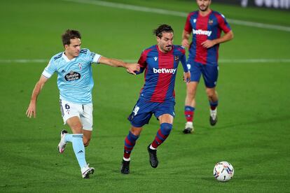En esa cruda realidad y aunque el final del campeonato se atisba lejano, se generó una tensión que tiñó todo lo que ocurrió sobre el césped. La primera parte obedeció a ese estrés porque por más que se jugase más tiempo en campo del Celta nada fluyó con limpieza. Quiso el Levante, vivo para darles cancha a sus laterales y abrir el campo a través de ellos. De fuera a dentro se movían Campaña y Rochina, con una libertad que no siempre detectó la defensa rival. Se aplicó en defensa el Celta, pero se olvidó de atacar. Le faltó fútbol durante bastantes minutos al equipo de Óscar y no es buena señal cuando, una vez más, los resultados le empujan a moverse con el agua al cuello y no parece atisbarse el catálogo de soluciones de otras campañas.