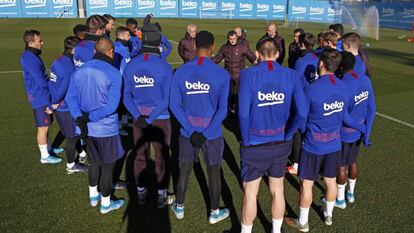 Ernesto Valverde dirigió esta mañana el entrenamiento del Barcelona en la Ciudad Deportiva Joan Gamper mientras la directiva delibera sobre el relevo del técnico. El entrenador azulgrana llegó a las instalaciones del club en Sant Joan Despí casi tres horas antes de la cita fijada (las 11.00) para el primer entrenamiento de la plantilla azulgrana después de su derrota el jueves pasado ante el Atlético en la semifinal de la Supercopa disputada en Arabia. Poco después llegó a la Ciudad Deportiva el presidente del club, Josep Maria Bartomeu, que se reunió con Valverde para abordar la situación. El encuentro fue de algo más de una hora. La junta directiva, reunida esta tarde, es la que debe decidir ahora sobre la situación del técnico.