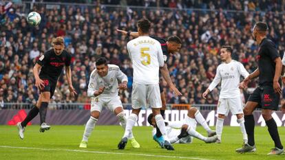Sin embargo, su evidente mosqueo, culminado sobre el césped con un levantamiento brusco de brazo tras no decretar el árbitro falta de Vinicius sobre Jesús Navas en la última jugada del encuentro que hubiera permitido una ocasión más a su equipo, aún tuvo una oportunidad más de rebotar por todas las paredes de la sala de prensa del Bernabéu. “Es un gol absolutamente legal y, es una de las claves del partido. Estamos descolocados”, dijo.