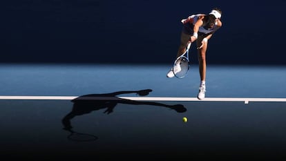 Melbourne alumbra definitivamente el renacer disparando el termómetro, envolviendo la ciudad en casi 40º de un calor asfixiante que derrite hasta a las gaviotas que pasean por Melbourne Park. No a Garbiñe Muguruza ni Simona Halep, que regalan un estupendo cuerpo a cuerpo en la pista central del que sale airosa la hispano-venezolana, finalista con todas las letras del primer grande de la temporada. Sí, Garbiñe ya está a aquí: 7-6(8) y 7-5, en 2h 05m. Tres años después de haber disputado su última final en un major y de dos deambulando por el desierto, sin un horizonte claro, despeja el paisaje y vuelve a irrumpir como un torbellino en la primera fila del escaparate. Sí, Muguruza está de vuelta.