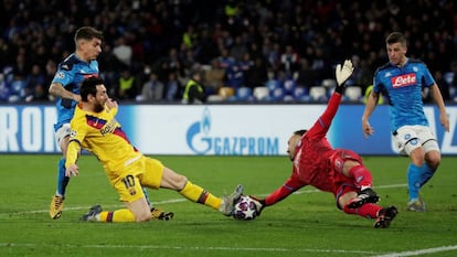 Messi pasó de puntillas por San Paolo, como si fuera un jugador cualquiera, enjaulado por el Nápoles. Nadie advirtió ningún parecido del azulgrana con Maradona. El rosarino se dejó llevar por el partido, más conformista que rebelde, e incluso tomó una tarjeta por entrar con los pies por delante a Ospina. No hubo ni siquiera un regate de Messi que evocara la figura de Maradona. El 10 fue uno más en un equipo desfigurado y anónimo, afortunado en una jugada, casi la única de mérito, rematada por Griezmann.