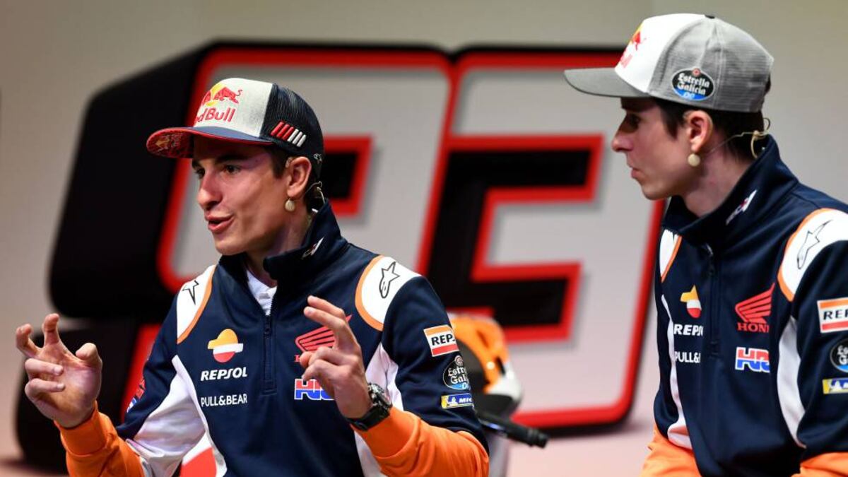 Ya les han puesto nombre. Son los Márquez Bros. Los primeros hermanos que comparten box en el Mundial de Motociclismo. El equipo Repsol Honda decidió meterlos a los dos, a Marc Márquez y a Alex Márquez, en el mismo garaje. El campeón del mundo de la categoría reina, que dice que no regala nada y que dará los consejos justos, y el de Moto2, un novato que aspira a que le llamen por su nombre propio y a que no se le mire cada día como al hermano de. “Soy dos veces campeón del mundo”, se reivindicó en un par de ocasiones este jueves. A ambos se les vio por primera vez juntos en España y con los colores de la petrolera en un evento celebrado en el Campus Repsol, en Madrid, para presentarlos en sociedad cuando queda exactamente una semana para que el campeonato empiece a rodar.