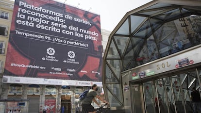 Con el balón rodando ya en los estadios, ese intenso proceso de comunicación que primero se plasmó en un anuncio de televisión lleno de fantasía culminó en un lugar simbólico: la Puerta del Sol. En el enclave madrileño, donde se desplegó una lona de casi 20 metros de largo y ancho, LaLiga conquistó por primera vez un espacio reservado en los últimos años al culto de seriales como Narcos con el objetivo de mostrar que su capacidad de generar emociones es tan potente como la de cualquier plataforma de vídeo bajo demanda. “Me acerqué pensando que anunciaban un nuevo estreno que no había visto, pero no hay punto de comparación. Estoy mucho más enganchado a los partidos del Real Madrid que a cualquier otra cosa que pongan por la tele”, comentaba entre risas Ezequiel Campos, que descubrió el cartel bajando por la calle Montera el pasado miércoles 16, parapetado tras una mascarilla y unas gafas de sol y en compañía de su hija.