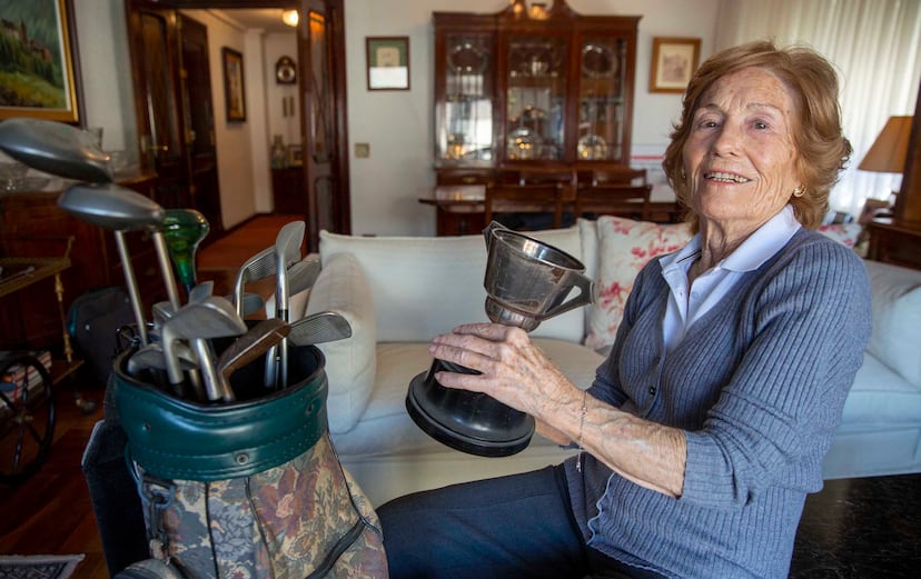 En el vídeo que acompaña a esta noticia, Larrazabal rememora los éxitos que consiguió abriéndose camino en un mundo de hombres y entre las élites de la época. La hija de un profesor de golf, que como ella misma explica en esta vídeo entrevista “daba leña a las ricachonas”.