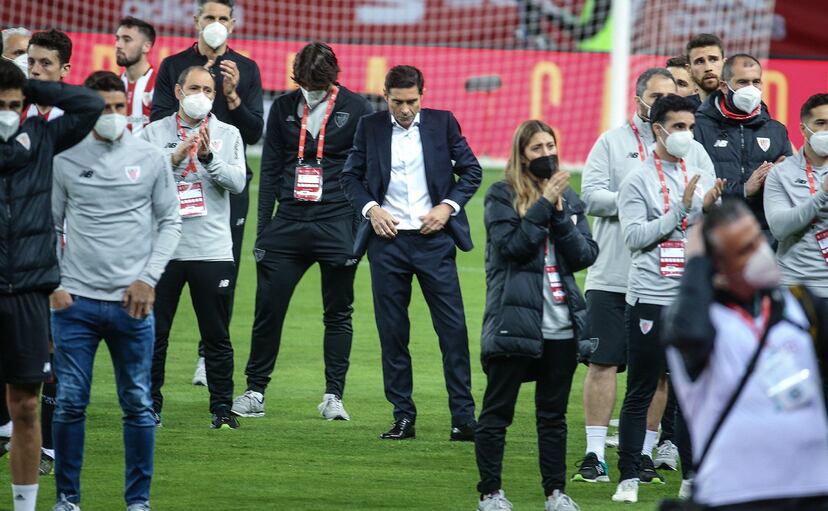 El técnico rojiblanco no puso excusas a la derrota, aunque, antes de todo, lanzó un mensaje a los aficionados que rumiaban su decepción: “Les diría que queríamos con todas nuestras fuerzas ganar este partido”. Y justo fueron esas ganas, un exceso de ellas, dijo, la causa de que la Copa volara a San Sebastián: “Creo que ese fue nuestro gran problema: la excesiva responsabilidad que teníamos de ganar. Todos los futbolistas querían ganar por la afición y eso nos ha jugado una muy mala pasada”, añadió Marcelino; “nos hemos alejado mucho de nuestra mejor versión. No hemos sido fluidos y acertados. Pero toca estudiarlo, ver lo que ha fallado, levantarse y seguir”.