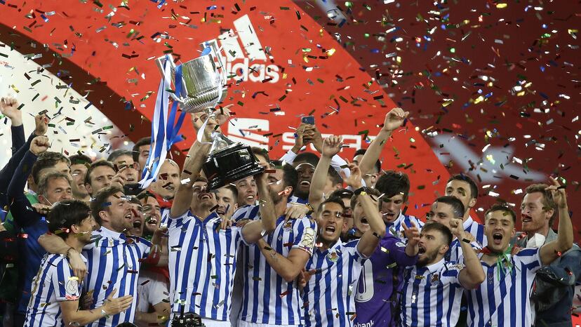 La Copa más interminable de la historia resultó apoteósica para la Real Sociedad. La espera de un año bien que le mereció la pena. Un tercer título copero 34 años después. Una oda a la felicidad de todo el realismo, que se impuso con todo merecimiento a su vecino con un penalti para la leyenda de la entidad anotado por Oyarzabal en el segundo periodo.