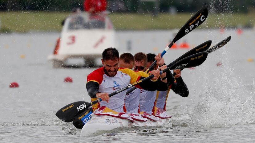 Este domingo han ganado el oro en la Copa del Mundo. Con un golpe de autoridad, con una excelente salida y dominando la prueba de principio a fin con el ritmo impuesto por Saúl Craviotto, el marca de la embarcación. El ruido del agua, de la respiración y de las paladas de nueve barcos se hace tan intenso que es como si de repente llegara un pelotón de 500 ciclistas que arrasa con todo. España ha derrotado a la todopoderosa Alemania (+0,65s) y a Bielorrusia (+1,78s) y presenta así su candidatura al oro olímpico en Tokio. En los dos últimos mundiales, siempre habían quedado por detrás de los alemanes.