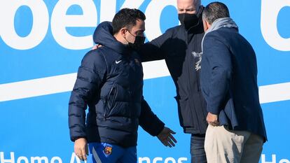 La mañana comenzó agitada en la Ciudad Deportiva del Barcelona. Jordi Cruyff, asesor de fútbol y Rafa Yuste, vicepresidente deportivo, se mostraron junto a Xavi Hernández en el entrenamiento del primer equipo, previo al partido de este domingo ante el Alavés (21.00, Movistar LaLiga). La idea es enseñar unidad, también pedir paciencia. “Se necesita más tiempo del que queríamos. Hay que insistir en la idea que hizo grande al Barça. Pero claro que me preocupan los resultados. Si trabajas bien, pero no hay resultados, claro que te preocupas. Creemos mucho en este modelo de juego y vamos a tirar por ahí”, aclaró el técnico del Barcelona. Antes, el preparador catalán se había reunido con Ansu Fati y su familia. El club informó este viernes de que el canterano tiene una lesión en el tendón proximal del bíceps femoral de la pierna izquierda. “Ansu está muy afectado. Es una recaída. El lunes haremos una reunión para decidir qué hacemos. Estaremos muy pendientes de él e intentaremos que no se lesione más”, explicó Xavi.